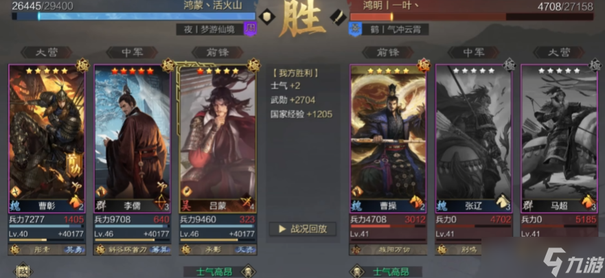 该体系攻防兼备,适合战法齐全的中高红玩家,白板也能打出稳定表现。配置方案为:曹彰(击势+一骑当千,英勇弓,全攻击)、木鹿大王(攻其不备+浑水摸鱼,象兵难测+疾行,全速度)、曹操(单骑救主+反计之策,重骑兵难测+出奇,全防御)。木鹿大王的象兵特性与曹操的减伤形成双重保障,反计之策精准克制法刀、菜刀等爆发队,但对“反计之策+浑水摸鱼”两大核心战法需求极高,门槛相对较高。