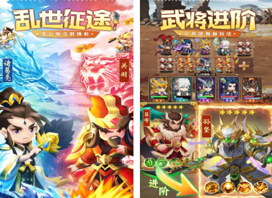 本作采用Q版美术风格,深度植根于中国三国文化语境。玩家可招募关羽、诸葛亮、貂蝉等百余位经典角色,每位武将拥有独立星级成长线、专属兵符技能及羁绊组合系统。战斗采用半自动回合制,强调阵型编排与时机释放——如“火攻”需前置铺垫,“连环计”依赖敌方站位。城池争夺、跨服国战等PvP玩法进一步强化军团协作价值,策略深度与文化辨识度并存。