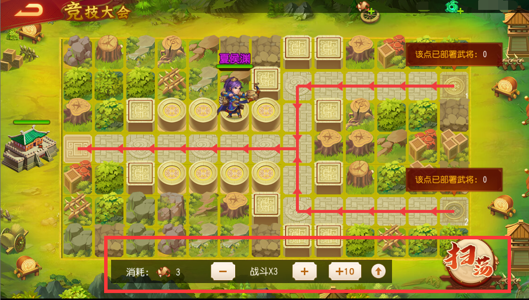 1、竞技大会为跨服玩法,同一平台的主公会在一起进行。主公进行竞技大会前需要部署【防守阵容】,即在固定的战斗战场上部署守将。根据主公防守阵容守将的守备力生成【守备力排行榜】。