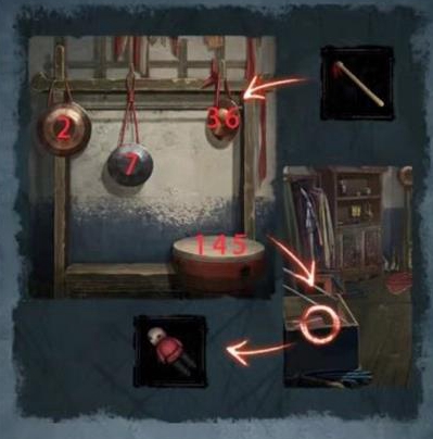 接着根据右手边报纸上的图形用鼓棒敲击乐器,顺序可看下图,然后打开左手的箱子得到布娃娃