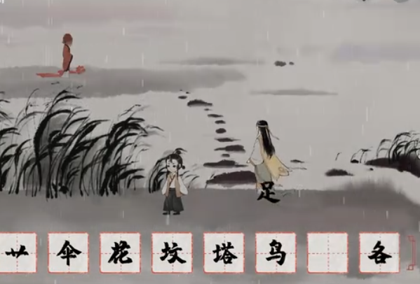 把〔鞋〕〔花〕〔伞〕给无足人,〔鹭〕拆〔路〕,用〔路〕为无足人铺路过河(我感觉最好按这个顺序,我不按这个顺序来无足人一直不过河)