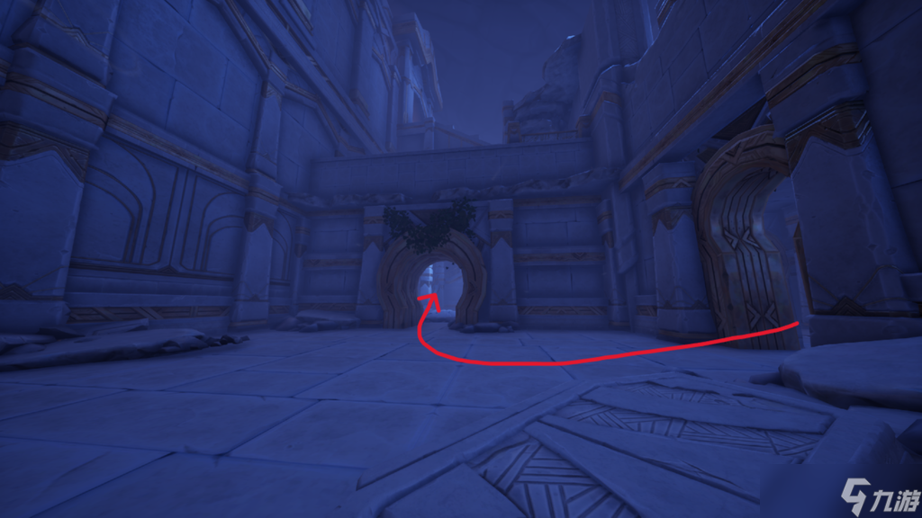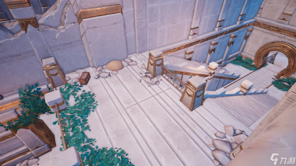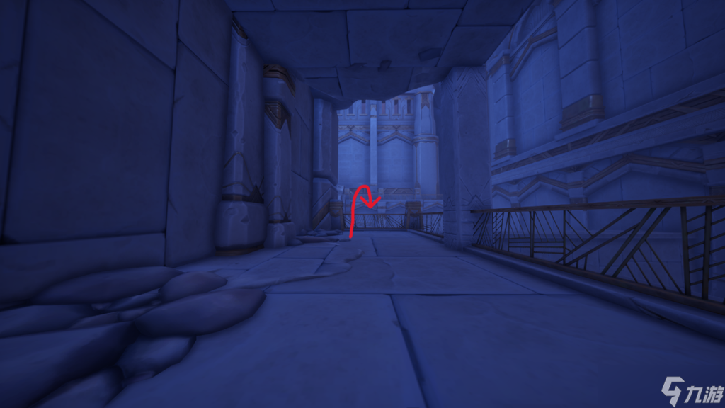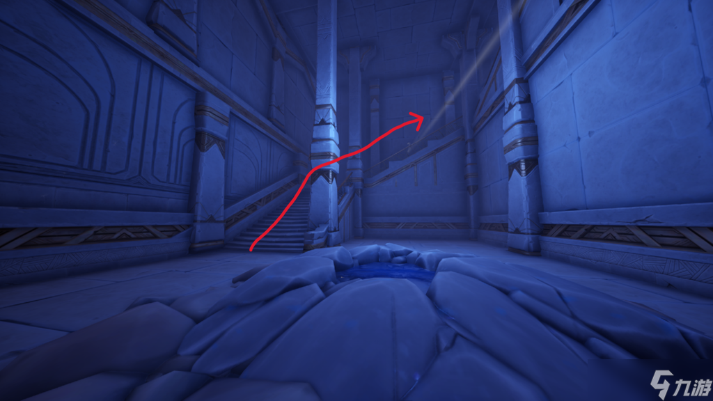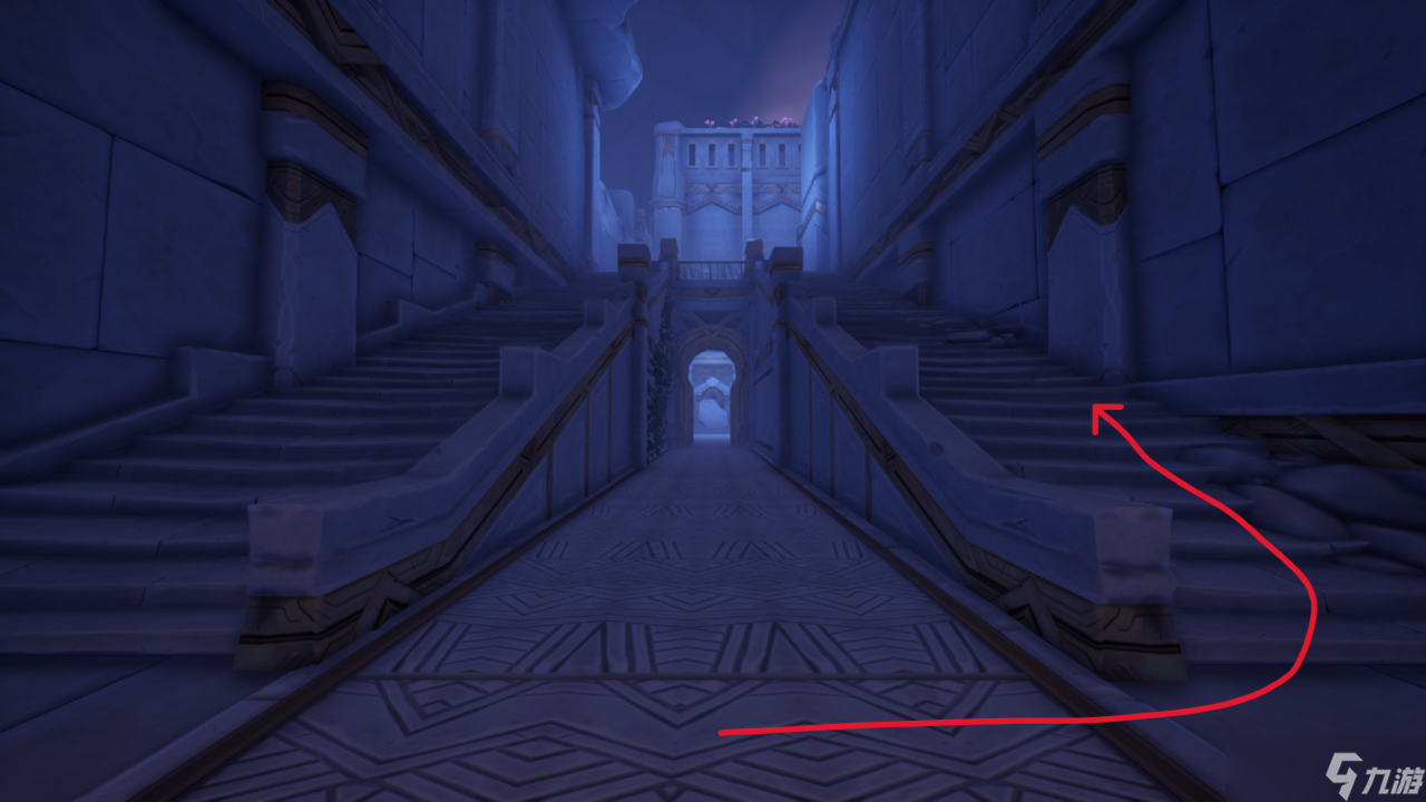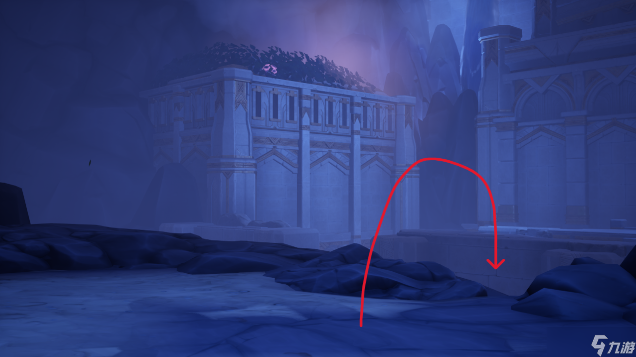 ① 宝箱位置:从雕像左侧的悬崖边缘跳下去
