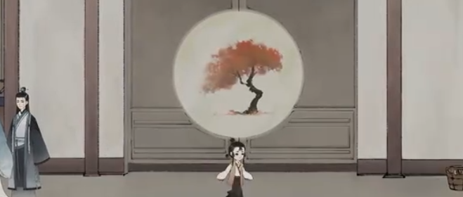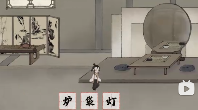 6、拆分【袋】,把【衣】放到镜子前面,获得【绣】,拆分【绣】和【灯】,拆分【秀】,组合【禾】和【火】得到【秋】,等门上图案变成秋天后,把【秋】拖到门上。