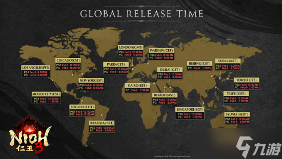 由Team Ninja开发、光荣特库摩发行的黑暗风格战国题材动作角色扮演游戏仁王3将于2026年2月6日正式发售,中国大陆地区标准版售价为三百四十八元。官方已公布全球各平台解锁时间:PC版本将于北京时间2月6日十三时整开放下载与游玩,PlayStation 5版本则计划于同日零时同步上线。