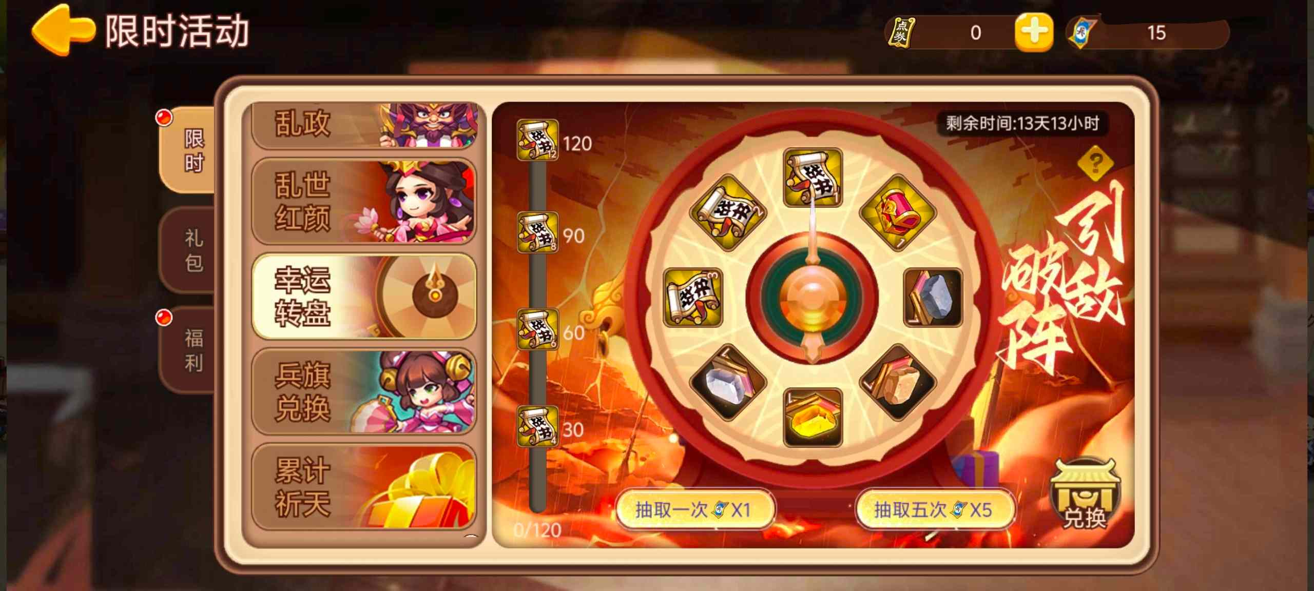 活动内容:活动期间,开启引仇套幸运转盘。 使用1个兵者符可以转1次,转盘抽得活动道具可以兑换成套装部件。完成累计转盘次数可以额外领取兑换道具。