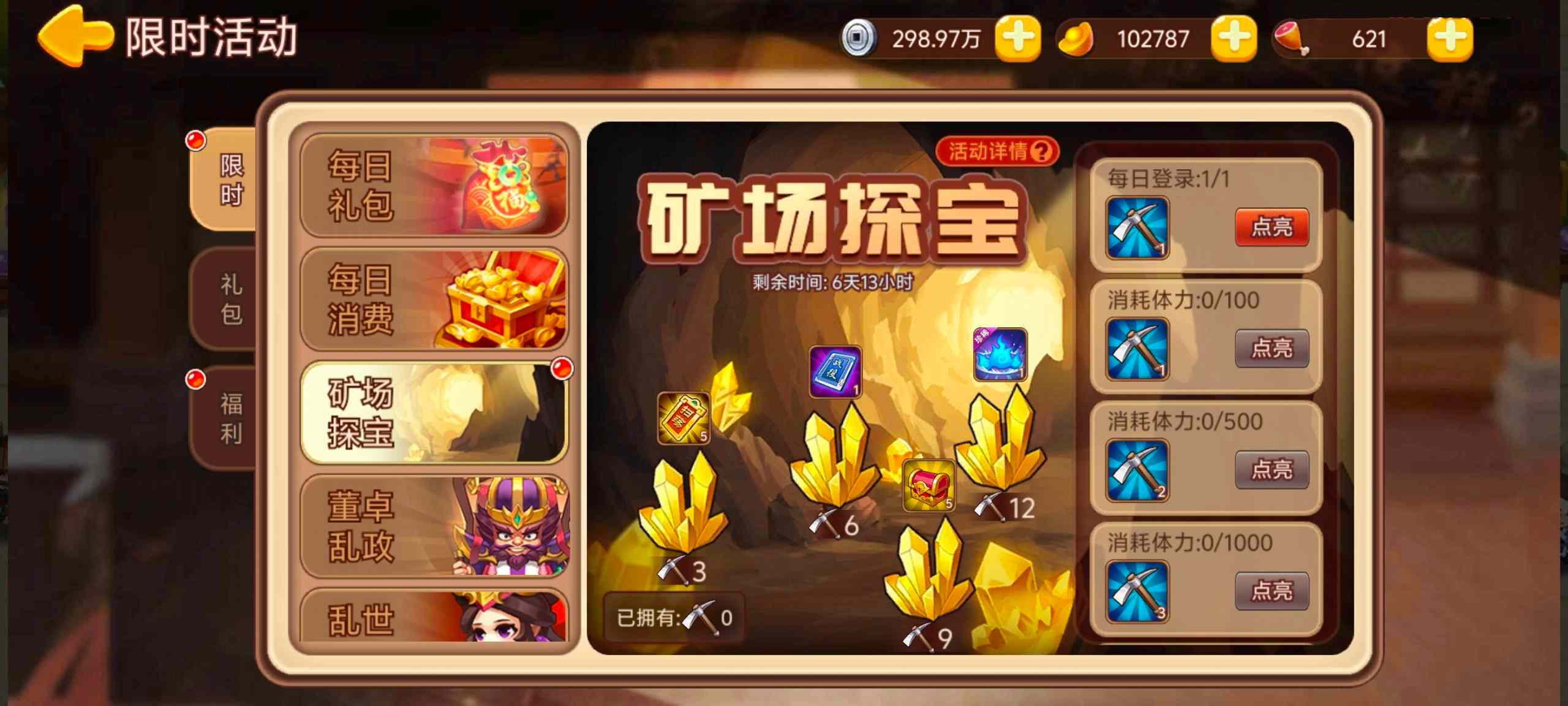 活动内容:活动期间完成任务可获得道具“铁镐”,消耗“铁镐”可从矿石中挖出奖励。