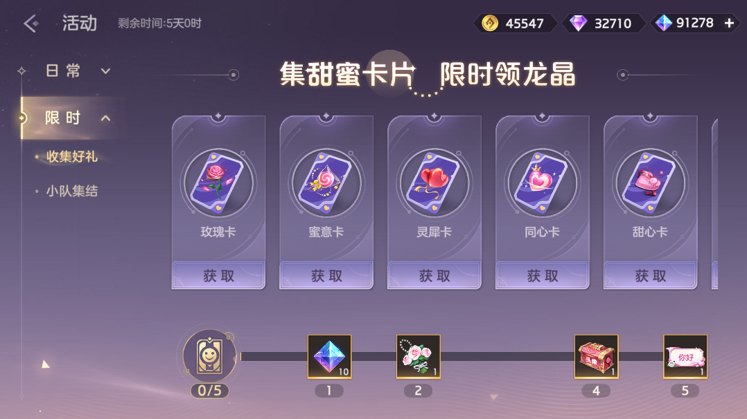 甜蜜礼包限时直售,甜蜜卡片、龙晶、10级绘卷经验包、热诚之馨、浓意之馨、淡雅之馨、温情之馨等道具你来拿!收集甜蜜卡片可在收集好礼活动领取奖励。