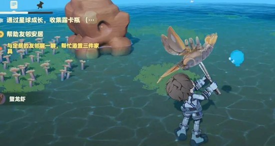 就这样,在星布谷地的河岸或池塘边,通过反复的“移动一步、静止等待”的节奏,你可以非常缓慢地接近龙虾。整个过程需要极大的耐心,切记不能贪心连续走两步,也不要在一个位置停留过久导致龙虾脱离你的接近范围。当你最终成功贴近龙虾背后时,屏幕上会出现抓取的交互图标,此时迅速点击,就能将这只星布谷地的特色生物收入囊中。