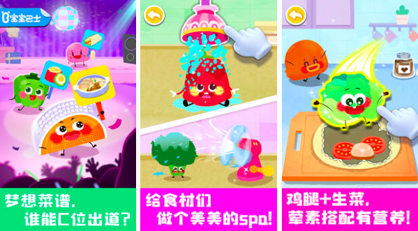 聚焦食物认知启蒙,选取八种典型日常食材进行人格化设定,每种食物拥有专属成长故事与制作流程动画。孩子可跟随“米饭宝宝”了解稻谷种植,“鸡蛋宝宝”讲述孵化过程,并通过搭配任务理解荤素组合逻辑。通过角色互动与情境选择,自然引导儿童建立均衡膳食观念,辅助改善挑食行为。