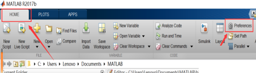 1、首先打开matlab后,找到HOME下的preference并点击。