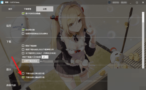 4、接着取消勾选下载完成后,播放提示音。
