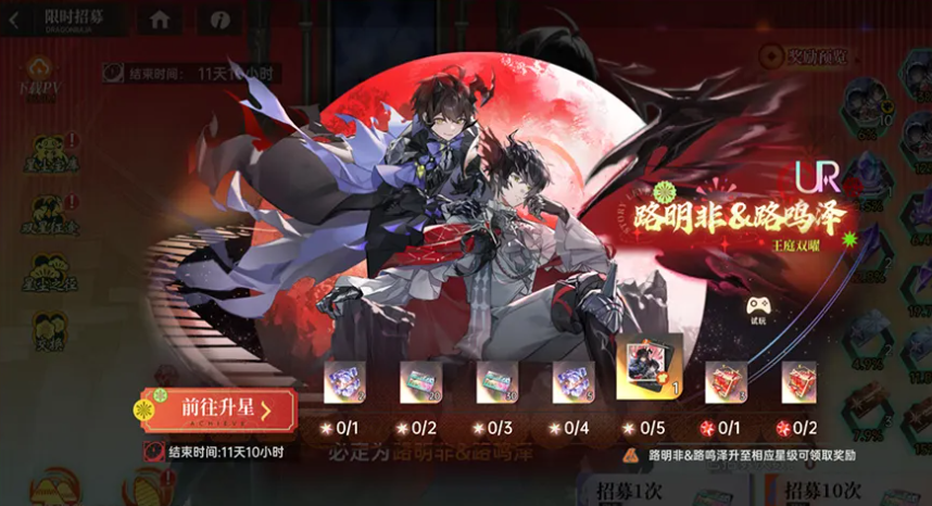 在活动期间将路明非和路鸣泽升到指定星级,可以解锁对应档位的丰厚奖励,让大家的实力提升和福利获取能同时进行,此外还有这两角色的专属外观等待大家进行领取。