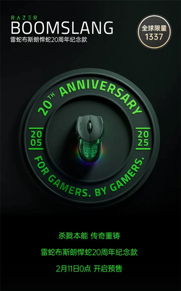 布斯朗悍蛇20周年纪念款采用典藏礼盒包装,除鼠标本体外,还随盒附赠雷蛇鼠标底座专业版、玻璃鼠标垫脚以及USB Type-A转Type-C线缆等配件。