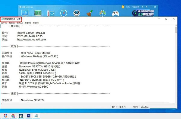 6、鲁大师打开以TXT纯文本格式保存的电脑配置详细信息。