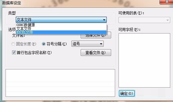 7.成功连接数据库之后,一定要将标签内容和表格文件连接到一起,打开文字属性界面之后将数据源设置为数据库,字段名设置Excel文件中对应的字段名称,点击确定按钮即可。