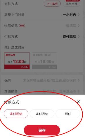 1、在顺丰速远app上下单寄快递的话可以选择上门取件,上门取件就是快递小哥上门来取件,那么我们就可以选择三种方式支付快递运费。