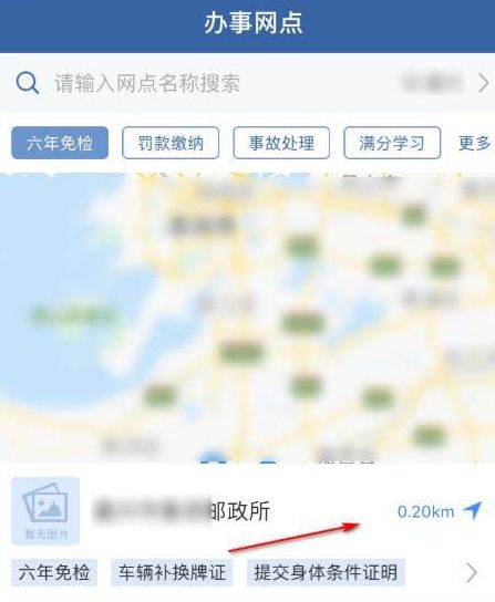 交管12123app怎么查询附近办理六年免检的地点