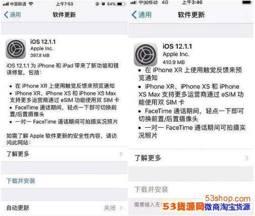 因为,在4G网络下,无法完成系统升级,同时,iOS12.1.1正式版的文件大小在300-500MB之间,需要消耗的流量较多。