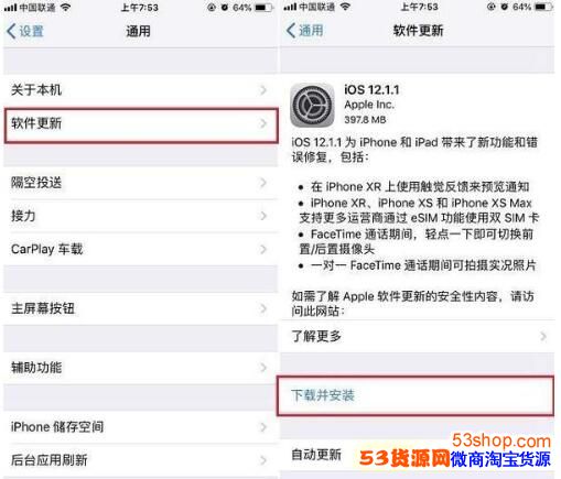 如果你已经收到iOS12.1.1正式版推送的通知的话,点开推送通知,选择:下载并安装,然后,等待系统自动更新,并重启手机,输入锁屏密码,就完成系统升级了,