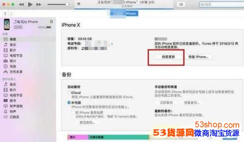 6、等待iTunes进行自动更新;