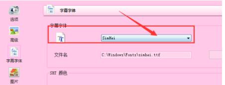 在字幕字体栏中就能看到当前的字体类型了,点击下拉菜单