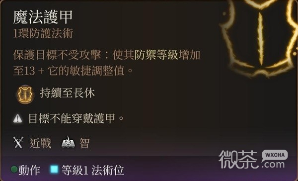 不能穿甲或者有特别好用的衣服要穿,那魔法护甲可以帮你AC调整到13。