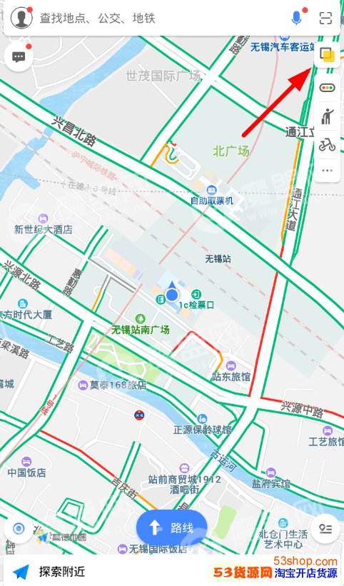 1、用户们现在要是想查看高德地图里的环境地图,那就应该先去页面右上角的按钮(如下所示),找到其中更新的“环境地图”功能。