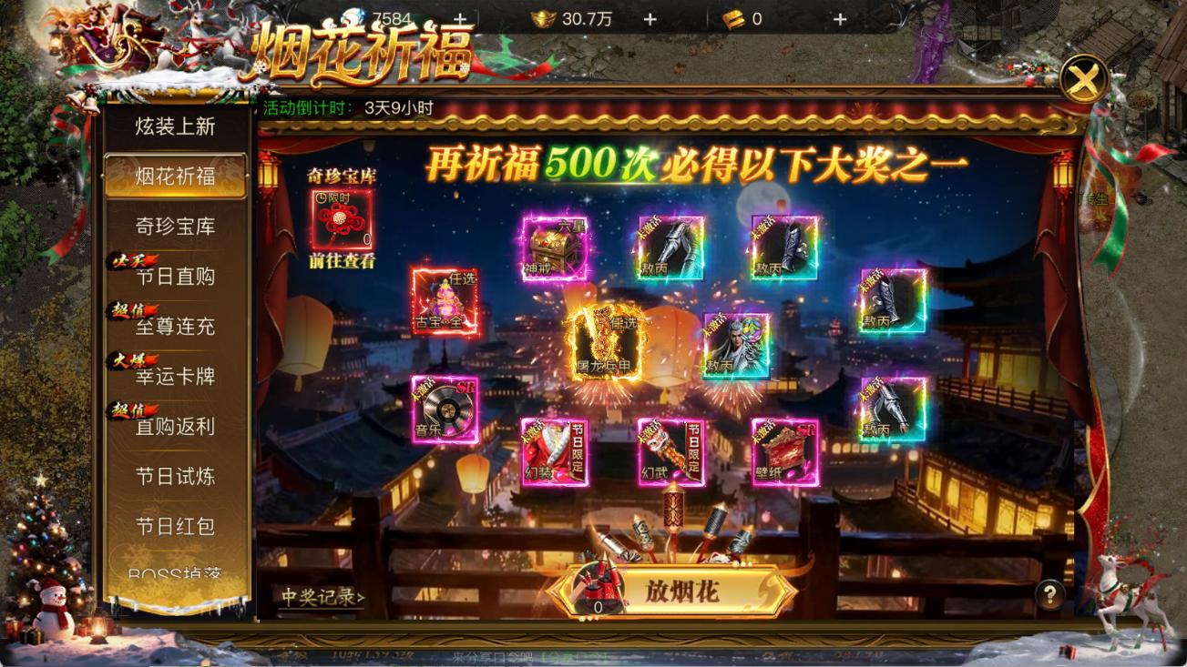 活动期间参与烟花祈福,即可有机会获得「屠龙神装」、「幻彩英雄部位」及海量珍稀资源。点燃烟花,福运满屏,神装降临!