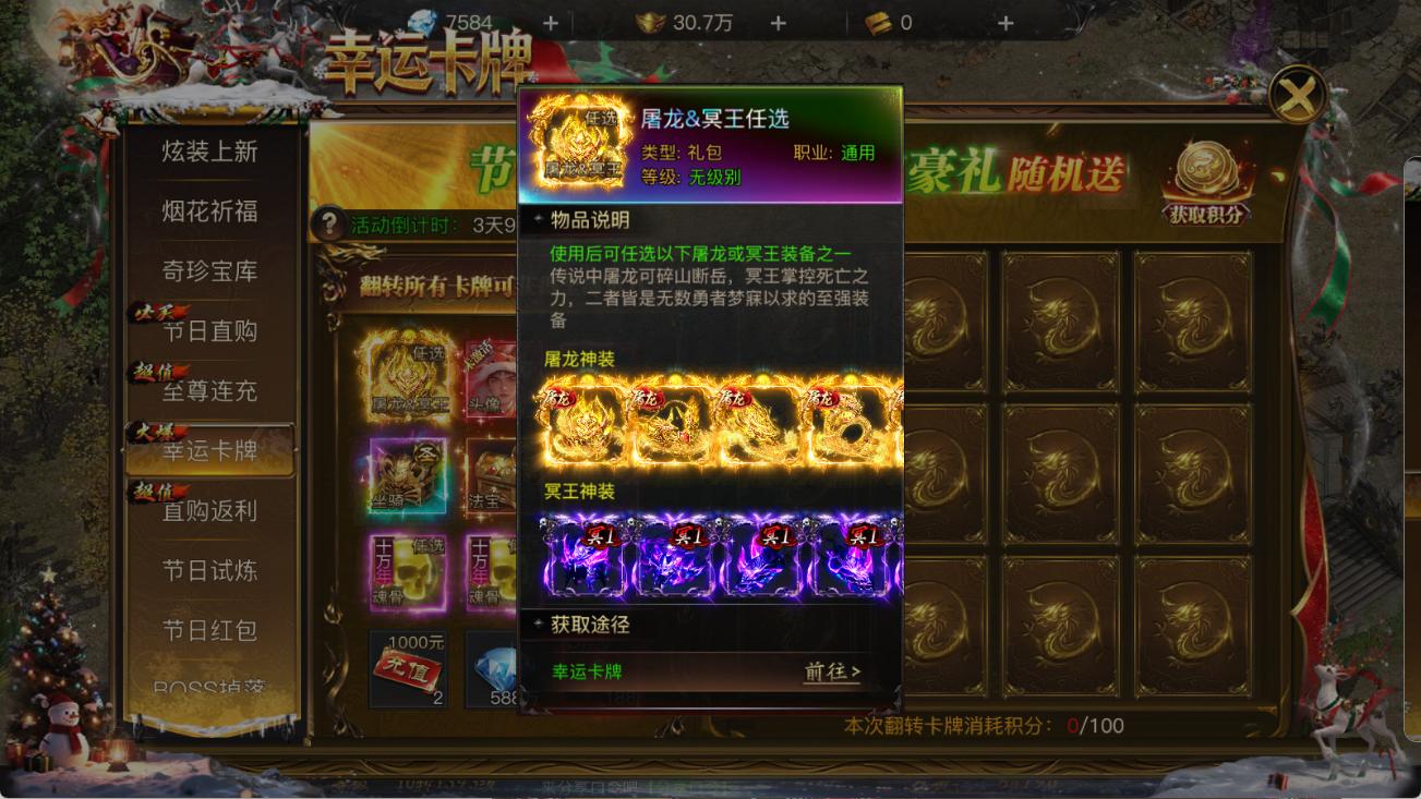 新春翻牌活动限时开启!每次翻牌均有机会获得「屠龙/冥王」、「新春限定头像」、「5级龙晶随机礼」、「圣兽坐骑随机宝箱」等珍稀奖励。好运翻倍,惊喜不停!