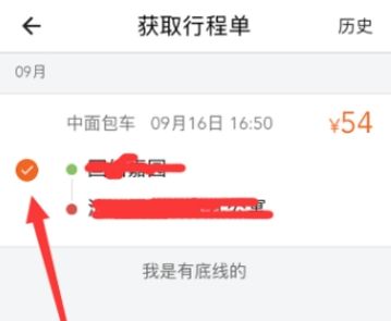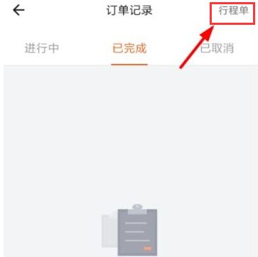 2、接下来从订单记录页面的左上角选择“行程单”功能,就可以查看行程记录并申请开具发票了。
