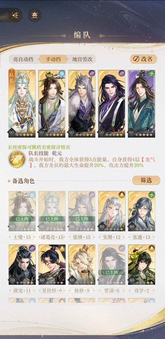 但是龙脉需要3层龙气维持,如果没有利见盘,必须通过诸葛亮二星天赋,赌队友放大给诸葛亮充够3层龙气。