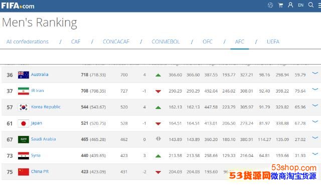 虽然原始积分入账了365分,不过排名积分却是不升反降,减少了8分,最新积分为423分,这一分数是国足近15个月来的最低排名积分,上一次比这个还少的是2017年3月时的407分。在排名积分减少的同时,中国队的总排名也下滑了两位,降至第75位,这一排名比国足的(自1993年8月创立FIFA排名系统以来的)平均排名还略低,换言之又进入到了“欠债”通道。