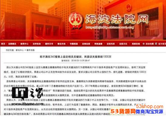 原告网易公司诉称,其系惠惠网站及惠惠购物助手软件的运营主体,惠惠网站为消费者提供网络导购服务,向消费者提供电商平台商品的历史价格信息和全网比价信息。截止2016年11月惠惠购物助手的用户达到1亿。2017年网易公司经查证,发现在使用360搜索引擎时,输入“惠惠”、“惠惠助手”、“惠惠购物助手”等关键词进行搜索,搜索结果中显示的优先结果并不是惠惠网或者惠惠购物助手相关链接,而是天猫网的相关链接,点击上述链接后直接跳转至天猫网页面,而不是惠惠网站或惠惠购物助手相关网页。