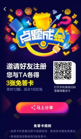 1.可以通过手机淘宝--淘宝直播相关活动页面,2.参加淘宝直播《点题成金》节目举行的答题活动,