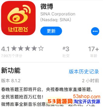微博更新到最新的4.1版本,关注“春晚答题王”参加答题!