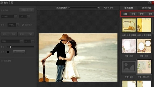 然后我们进入模板日历之后,在右边可以看到一系列推荐的素材,同时,你也可以在“我的收藏”中调取本地自己收藏的素材。