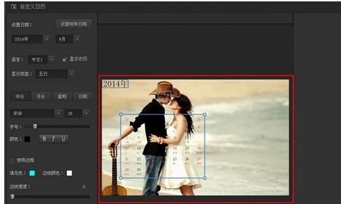然后我们将年份、月份、日期按自己的爱好排版好,然后在左边的编辑框中分别对“年份”“月份”“星期”“日期”等分别进行点击编辑,可以改变字体、颜色等等,也可以为日期加上边框,使日历更加美观。