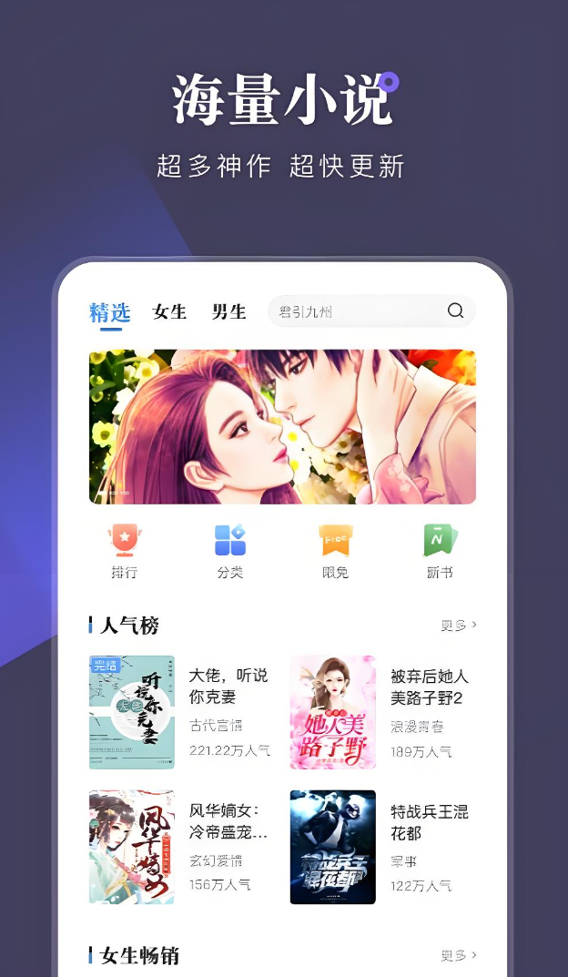 将很多著名的玄幻小说都资源整合到了一起,推出了很多优秀、精品且免费的小说作品,除了阅读方式多样化之外,还能匹配你的阅读口味去优化每日的推荐,多种板块随心选择,像是《万古神帝》此类大爆文也推出免费阅读,每天还会帮你记录看到哪里了。