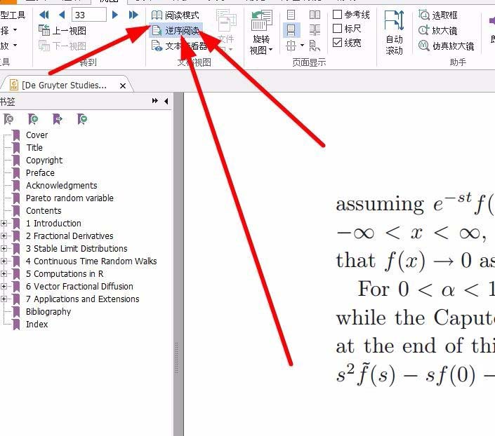 注意此时的“逆序阅读”。我们会发现系统的页码显示已经发生了逆序的变化。