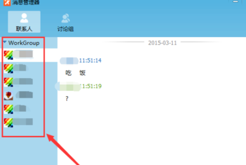 我们先打开飞鸽传书,双击点开和你传资料的对方,如图所示