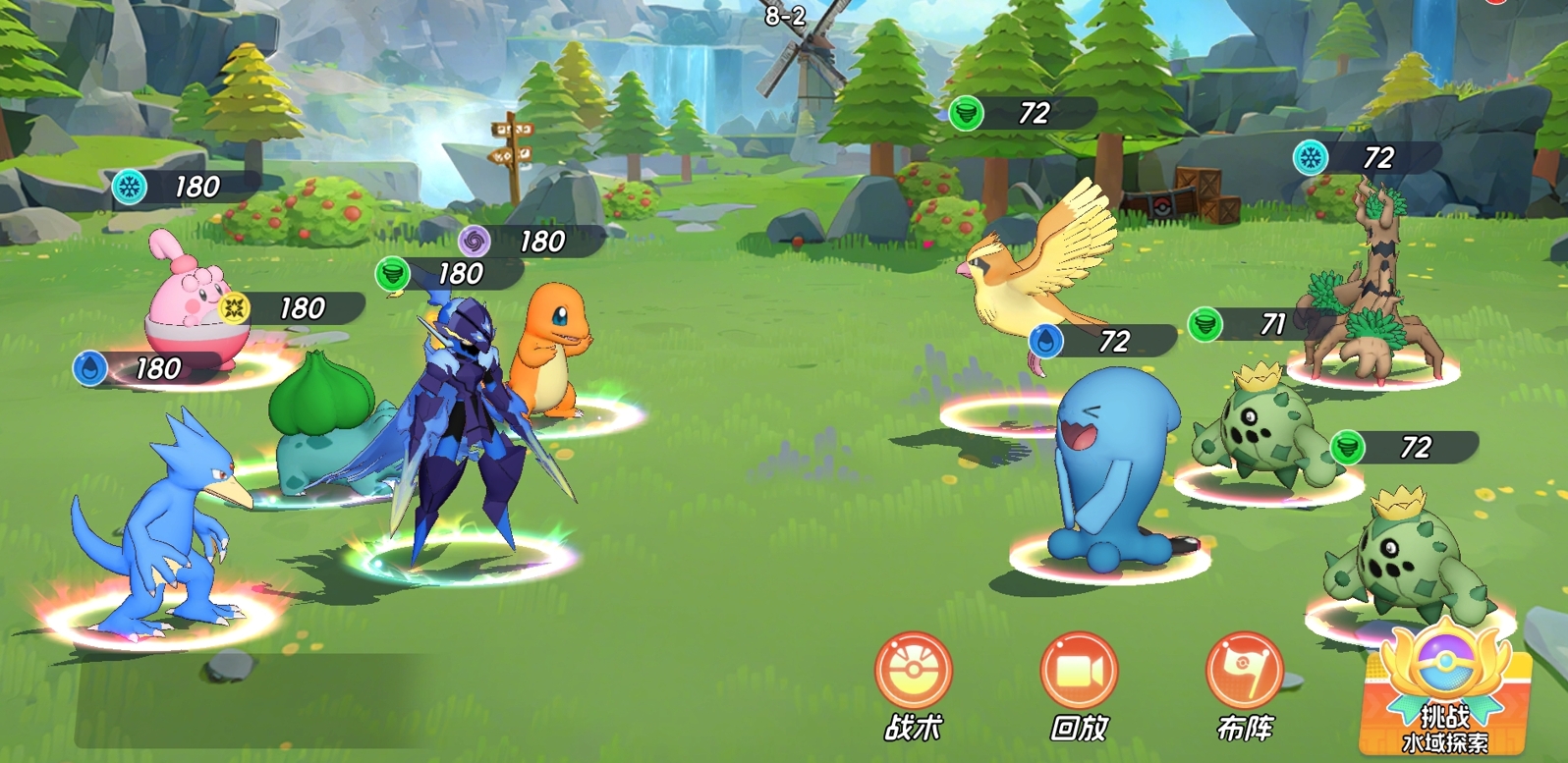 每一关卡中,玩家们都会遇到不同的宝可梦组合,各位可在作战前的准备阶段查看各关卡内的宝可梦信息,并对自己的作战阵容进行调整,以便能更顺利地完成作战。挑战时可开启自动和倍速,也可切出战斗这一功能等待最终的战斗结果,并且在开启切出战斗后,游戏会自动帮助玩家们推关,直至遇到打不过的关卡才会停止,让玩家能有更多的时间去享受游戏的其它玩法,是一个非常方便的功能。
