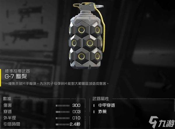 简评:基础携带上限3枚,轻甲穿透,爆炸后会从母弹中分裂出18个碎片爆炸,实战表现尴尬,虽然爆炸范围非常大、总体伤害极高,但是分裂的碎片不够集中导致伤害分散,在面对大量虫族、无权者时,表现也一般。