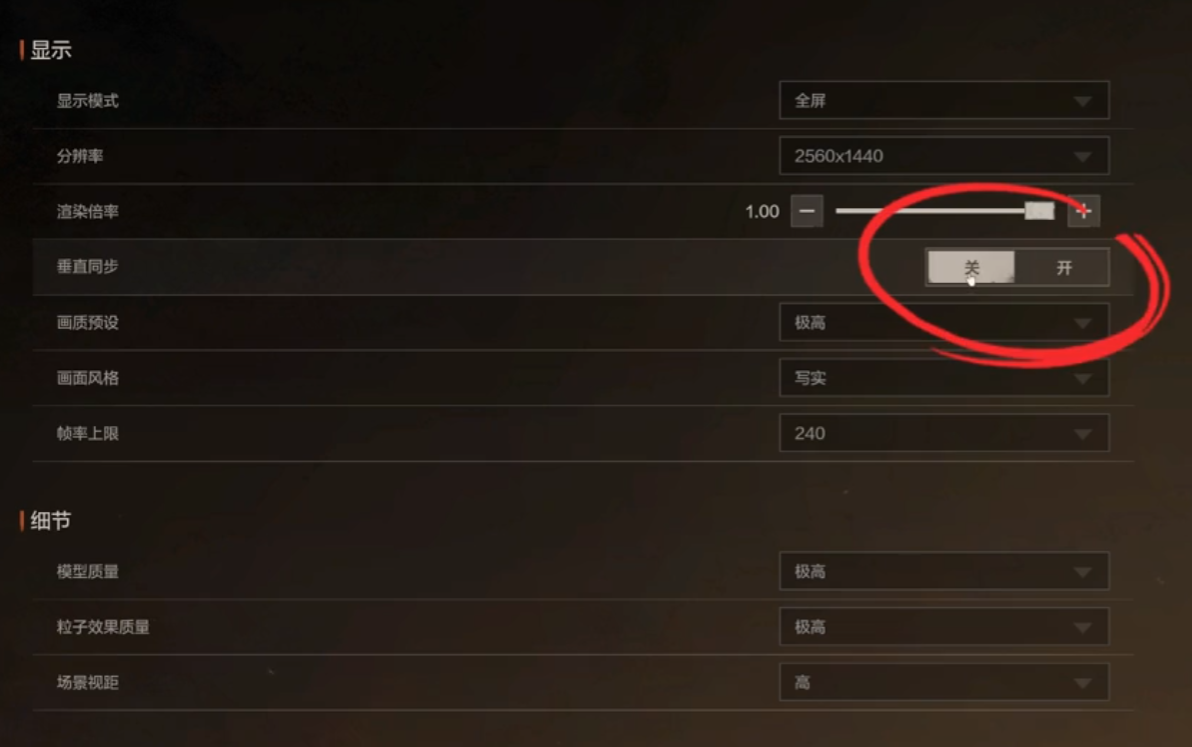 一个好的游戏画面固然重要,但作为射击生存类竞争游戏,太好的画质反而不利于我们搜索敌人。我们首先打开游戏“设置”选项中的“画面设置”界面,可以清楚的看到有许多亟需我们调整的各种设置,相信很多小伙伴们看见都会懵圈。下面跟着小编一步步来设置就可以啦。我们首先来到“显示”界面将我们的游戏分辨率调到最高,并将帧率上限调至“240帧”,过高的渲染帧数有时候会让我们的设备性能下降,造成卡顿,而若分辨率过低,那么很有可能影响我们搜索敌人的效率。而这之中最关键的就是“垂直同步”这个选项了!小伙伴们一定要记得把它关掉,一般对于不算优秀的设备来说,垂直同步是为了防止画面突然撕裂,造成的操作与画面不协调,但对于我们的而言,这点操作延迟会极大影响我们的手感,让我们反应慢上一截,可以说是非常致命了。