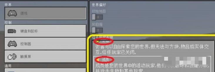 3,在设置界面中,向下翻一翻,找到一个选项叫“信任玩家权限”,这里可以更改玩家的权限。