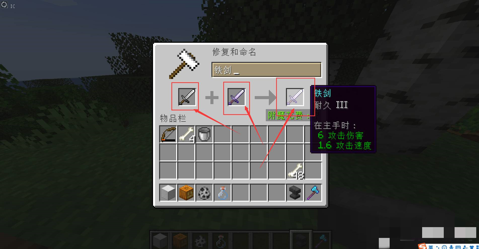【我的世界】附魔转移需要一个铁砧以及作为转移材料的装备。