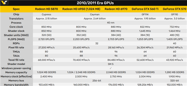 GTX 560 Ti则是Fermi GF114芯片,也是40nm工艺,1.95亿个晶体管少得多,332平方毫米面积也小得多。