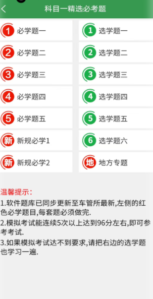 第五款软件将重点放在了本地题库的精确自适应和实时更新上。第一次登陆时,需要选择你想要的城市和你要学的车型。当新规则执行或者是地方题库发生变化的时候,新题速递模块会立刻推出新的题库,并且会对新的题目和被删减的题目进行标记,这样就不会让学生们把时间都花在复习上了。