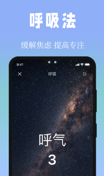 以神经调节为导向的前置干预型工具。主界面采用暗色背景与动态呼吸引导点,严格遵循4-7-8呼吸法节奏(吸气4秒、屏息7秒、呼气8秒)进行视觉同步提示;同时集成全身渐进式扫描冥想脚本,配合专业心理咨询师录制的催眠音频,内容覆盖焦虑缓解、安全感建立、正向自我暗示等方向。音频播放结束后,系统无缝切换至被动监测模式,实现从主动放松到被动追踪的全流程闭环。