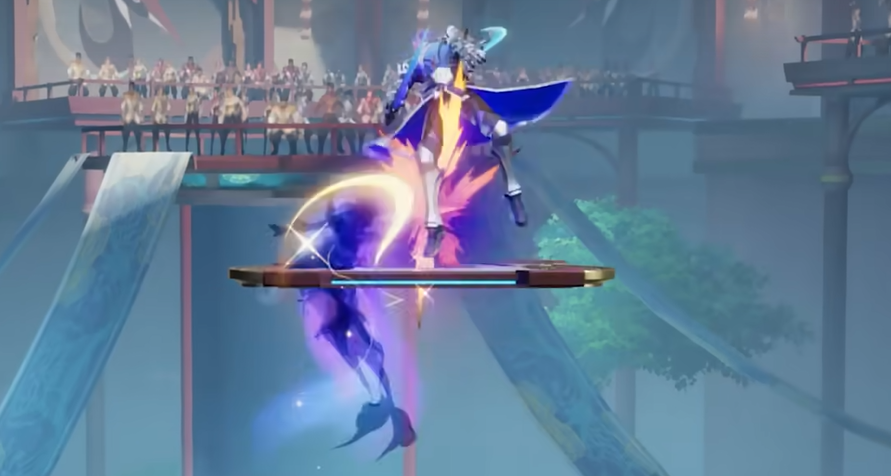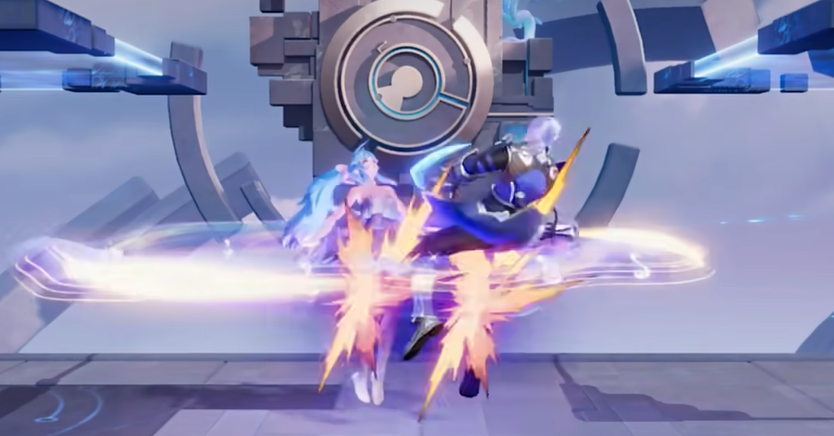冲刺时按普攻键,她会加速旋转把挡路的敌人撞飞,节奏感很好。空中招式有三种,跳起来点普攻是,连续空翻打击周围敌人,往上滑是用麦克风把敌人打得更高,方便接后续追击,往下滑是打击正下方敌人,击飞力度不大,落地后,直接接地面招式也不会卡顿。这里有个细节,朵莉亚用麦克风攻击时,麦克风顶端命中敌人的伤害和击飞效果会明显更高,空中攻击的时候尤其值得注意。