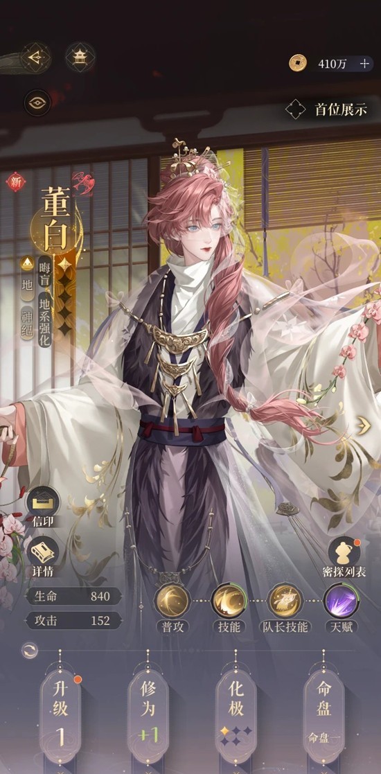 命盘有额外的攻击拐和相邻密探防御效果,以及地属性减抗。若凑齐5地,董白可开大全队回能+1。